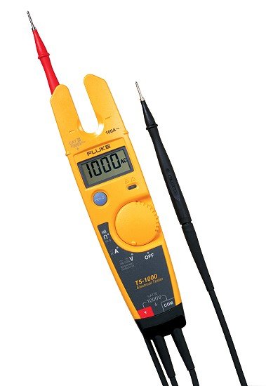 The Fluke T5-600 and T5-1000 Electrical Testers let you check voltage, continuity and current with one compact tool. With the T5-600, all you have to do is select volts, ohms, or current and the tester does the rest. OpenJaw™ current lets you check current up to 100A - without breaking the circuit. Its tough test leads stow neatly in the back of the tester, making it easy to tote the T5-600 in your tool pouch. Detachable SlimReach™ test probes are customized for national electrical standards. The test leads accept optional accessories such as clips and specialty probes. The optional H5 holster lets you clip the T5-600 onto your belt. Available in 600V and 1000V models.